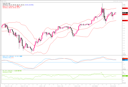 周二(5月21日),美元/日元周二在156.03-55窄幅之间波动。该货币对的近期走势仍然受利差的影响较大,美国公债收益率坚挺,对美元/日元构成支撑,美国两年期公债收益率为4.845%,10年期公债收益率为4.448%。日本公债收益率也坚挺,但10年期公债收益率仍低于1.0%。日本财务大臣铃木俊一的最新口头干预未能对日元起到支持影响。目前市场关注美联储官员的讲话,其中美联储理事沃勒(Christopher Waller)将于1300GMT就经济展望发表演讲。沃勒上一次公开讲话是在3月27日,当时他说他需要几个月的数据才能确定通胀率正朝2%回落。由于美国通胀远比先前所想的远远更加顽固,沃勒料将维持上述观点。沃勒的鹰派言论可能会给美元带来些许支撑。此外,近期投机炒作引发的大宗商品涨势,将支撑通胀削减降息的机率,美元则有可能也从中受益。日线图上,美元/日元继续维持再布林带通道中轨线之上,但波动幅度变窄,尽管套利交易仍撑持着美元,然上冲动能似乎在减弱。若无重大消息刺激,预料美元/日元将维持窄幅波动的走势。波动区间主要集中在155-157之间。