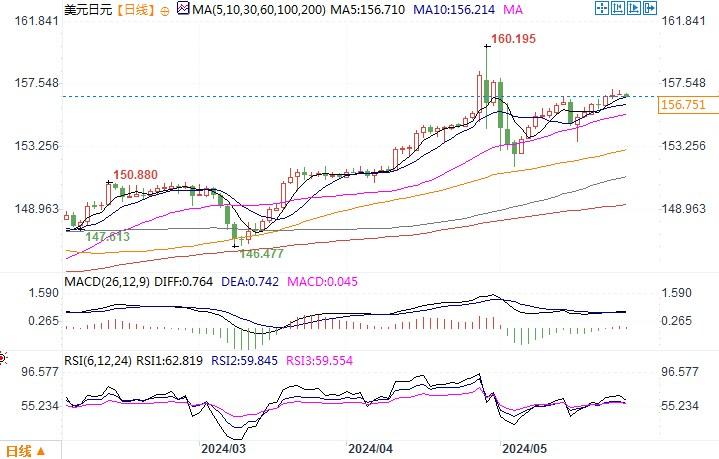 北京时间5月27日12:26美元兑日元报156.74/75。