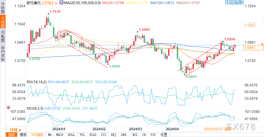 上周五(5月24日),重要的经济数据影响了外汇市场。德国第一季度最终GDP保持稳定在0.2%,与预期一致,并为欧元提供了稳定性。然而,英国零售额环比大幅下降2.3%,远低于预期的-0.5%,令英镑承压。
