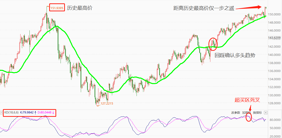 技术角度看,USDJPY的多头趋势仍在延续,并且昨日的最高点151.72距离历史最高价151.93仅有一步之遥。7月末至8月初,K线形成回踩结构并确认多头趋势,至今市价都运行在MA30中期均线之上。只要未来行情不跌破MA30,则多头可延续下去。不过,震荡指标KD已经在10月4日超买区形成死叉,意味着涨势结束,未来可能在巨量的抛压下进入跌势。历史最高价往往不容易突破,此刻需要警惕行情创新高后,因为获利了结盘出现,导致行情剧烈回调。