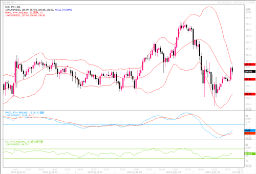 周四(5月30日),美元/日元下跌0.5%收盘在156.81,盘中一度低见156.37。周三,在美元/日元接近158水平之际,由于有传日本央行高度关注该水平,防范干预的谨慎情绪叠加当天美国第一季度GDP年化修正值环比仅符合预期,催发美元/日元获利回吐盘推低了美元。周五将有美国个人消费支出(PCE)物价指数和东京CPI等数据公布,需加以密切留意数据对该货币对的影响。短线小时图来观察,美元/日元出于反弹回升之中,但遇阻于警戒水平158,各类技术指标尚保持上顷态势,表明美元多头未现衰竭。下方只有跌穿近期震荡区间的底部支撑156.50,或宣告此轮反弹失败。当心周五晚美国通胀数据出现黑天鹅。