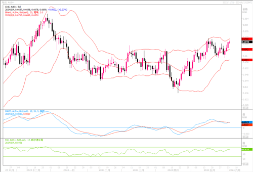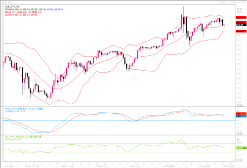 周一(6月3日),美元指数早些时候跌至104.13,为5月中来最低点。美元兑日元也跌至两周低点,纽约尾盘下跌0.7%,报156.22。周一的数据显示,美国供应管理协会(ISM)5月份制造业采购经理人指数(PMI)从4月份的49.2降至48.7,3月份曾触及18个月高点50.3。BMO在一份研究报告中指出,美国制造业在过去19个月中有18个月出现萎缩。在周一公布ISM指数下滑之前,芝加哥采购经理人指数、达拉斯联储、费城联储和纽约州的制造业指数均表现疲软。由于非住宅活动减少,4月份美国建筑支出也意外连续第二个月下滑,继3月份下降0.2%之后又下降了0.1%。在ISM和建筑支出数据公布后,根据LSEG的利率概率应用程序,联邦基金利率期货将9月份降息的可能性提高到59.1%左右,而上周五晚些时候为55%左右,上周早些时候则略低于50%。近段美国疲软的经济数据,提升美联储年内晚些时候降息的预期,令日元的贬值压力有所舒缓。日线图上,美元/日元隔夜一根大阴柱将汇价拖低至布林带中轨线之下,技术指标有勾头转下顷之势。须得提防美元/日元久攻不上转而招致逢高抛售盘打压产生下行的风险。整体来说美元/日元仍未摆脱区间震荡的走势,震荡区间主要集中在153-158之间。
