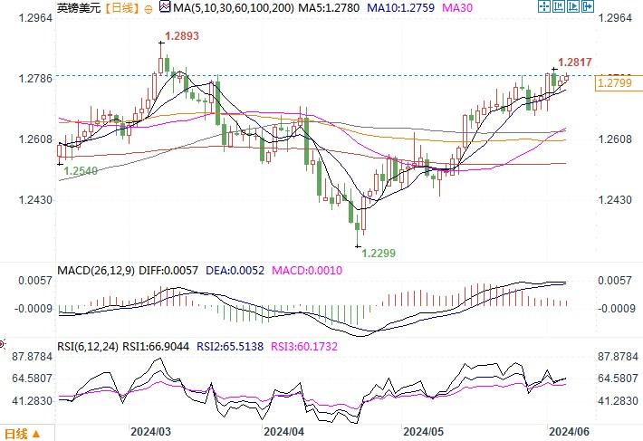 北京时间6月6日13:14英镑兑美元报1.2794/95。