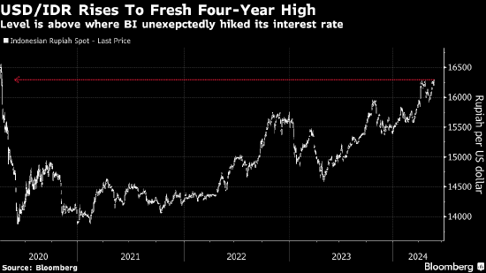 随着投资者解除新兴市场套利交易,印尼盾跌至四年新低,促使印尼央行采取行动支持汇率。