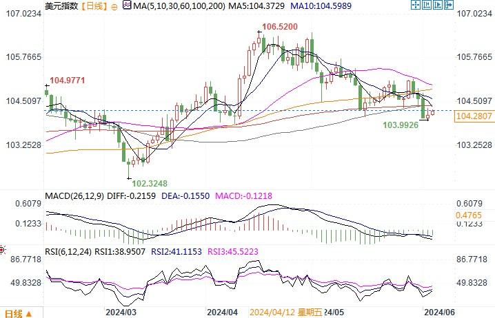 北京时间6月5日15:16美元指数报104.2807