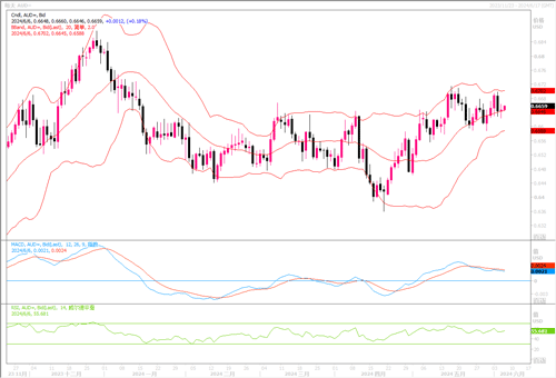 周三(6月5日),澳元/美元稳定在0.6630-0.6680区间内。来自澳洲的经济消息没有投资者担心的那么糟糕,虽然因高企的借贷成本和居高不下的通胀抑制了消费者支出使得第一季度实质国内生产总值(GDP)较前季仅增长0.1%。然而,市场已为经济陷入萎缩做好了准备,因此即使是微小的增长也足以令澳元感到意外和振奋。而且,由于通胀仍居高不下,令澳洲央行对利率不得不“更高更久”的立场提供支撑,也为澳元近期的走势注入了支撑力量。日线图上,澳元/美元继续在布林带中轨线之上受到支撑,技术指标RSI维持在均衡线略上方,澳元/美元似乎企图在更高水平(0.66之上筑成新低)。若周五美国非农数据疲软,澳元则有望冲破近期高点(0.6720)阻力而迈向更高台阶。预料非农数据前,澳元/美元保持波动于0.6625-0.6685区间内。