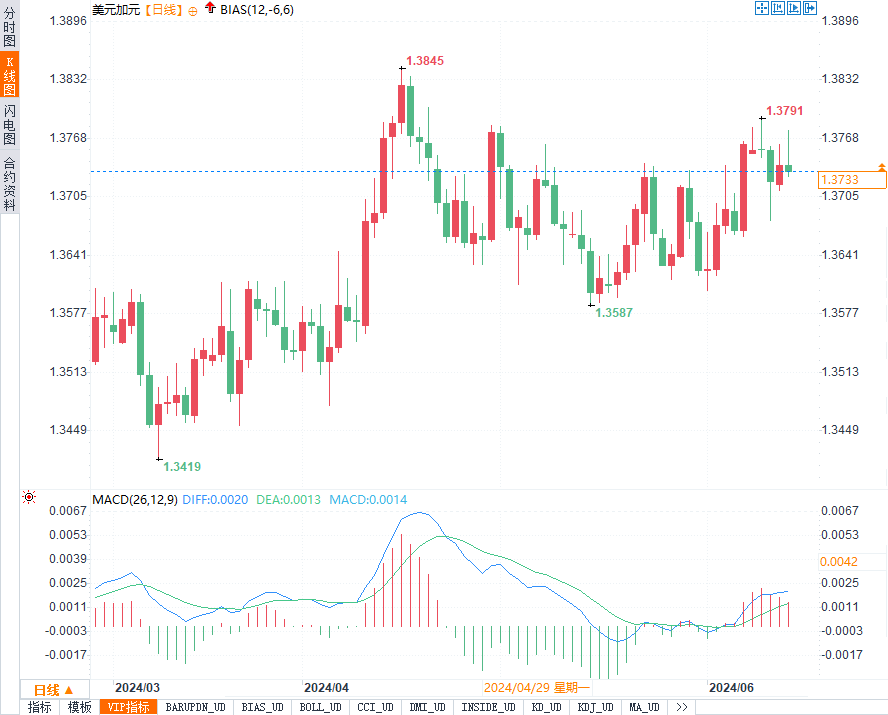 尽管加拿大的制造业和批发销售复苏,但消费者信心指数的下滑和通胀预期的上升抑制了市场情绪。投资者认为加拿大央行预期的降息已被考虑到加元的前景中。加元兑美元小幅调整,市场关注美元的贸易流向。