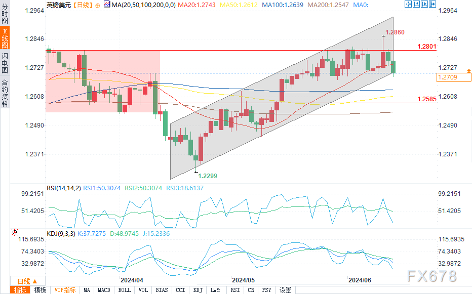 50日均线目前位于1.27579,高于200日均线1.26919,暗示更广泛的看跌趋势。