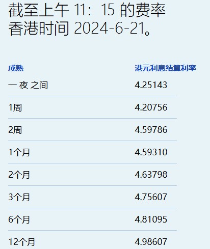 6月21日,半年结逼近,加上新股活动活跃,中短期拆息走高,隔夜息回升至4.25143%,与楼按相关的一个月拆息连升五天,报4.5931%,续创4月2日以来最高。