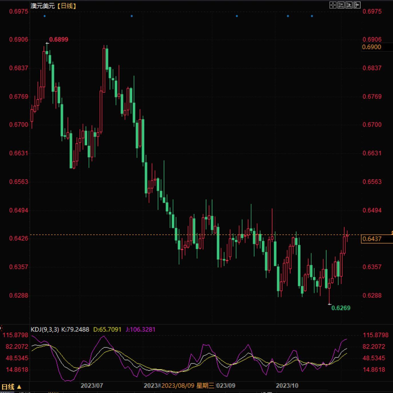 北京时间17:08澳元兑美元报0.6433/35。
