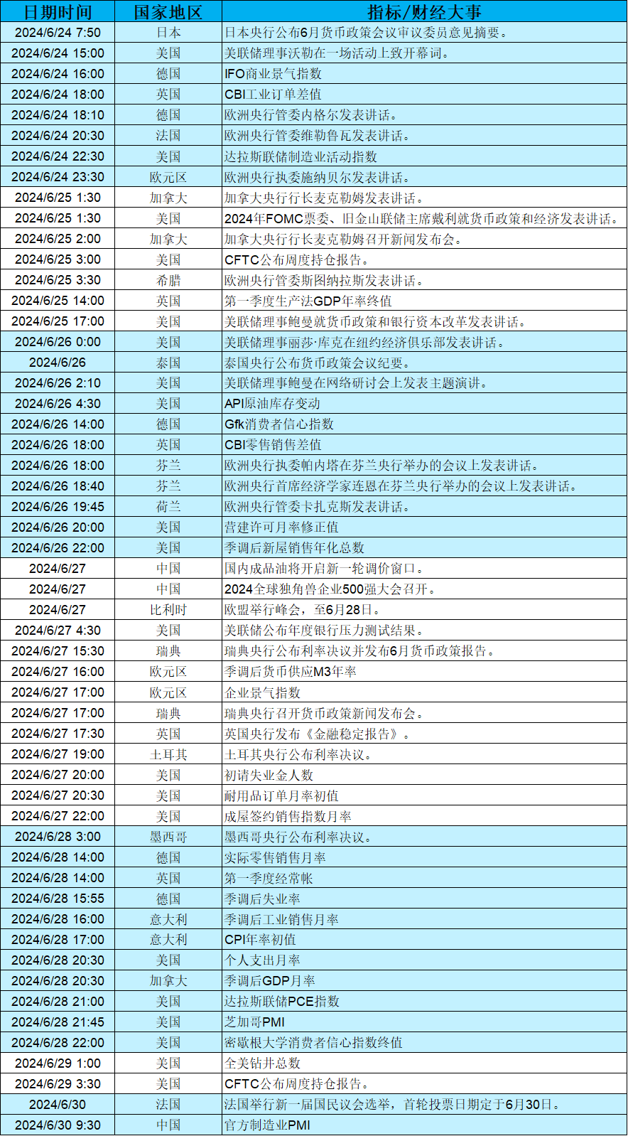 尽管美国经济数据显示了一些疲软迹象,如房地产数据和零售销售数据,但最新的6月PMI数据好于预期,显示经济广泛好转。标普全球市场情报首席商业经济学家Chris Williamson表示,PMI数据表明,美国6月经济增长速度达到了两年多来的最快水平,第二季度将迎来令人鼓舞的强劲增长,同时通胀压力也有所降温。