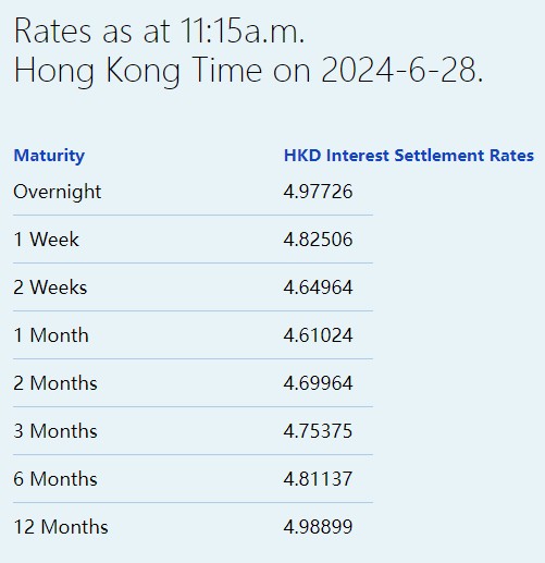 反映银行资金成本的三个月港元拆息降至4.75375%,为6月20日以最低,六个月及一年期分别降至4.81137%和4.98899%。