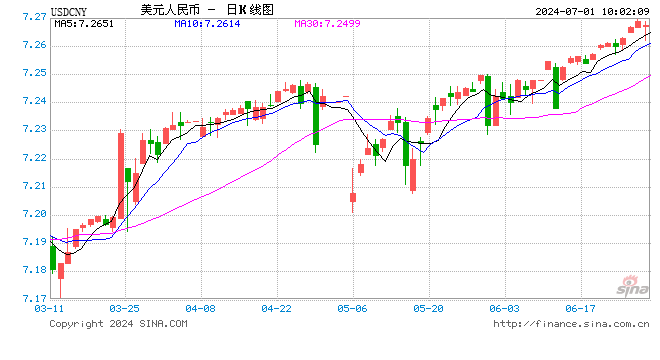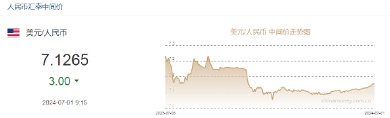 7月1日,人民币中间价报7.1265,上调3点,上一交易日中间价报7.1268。