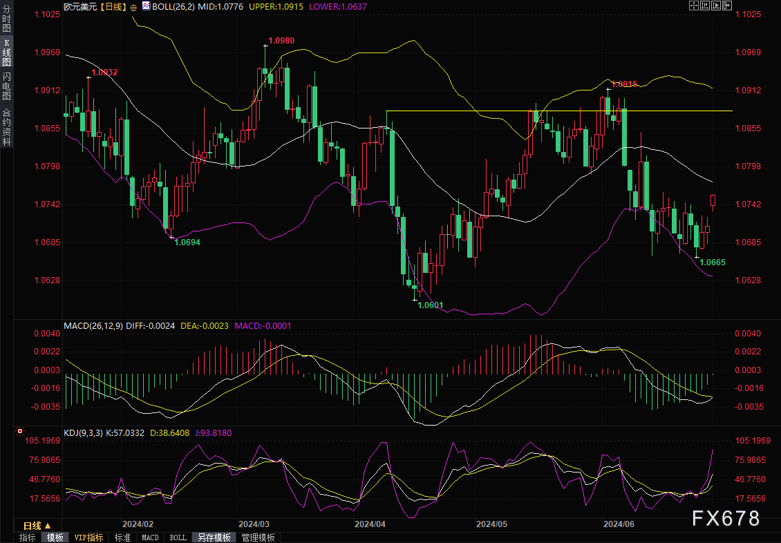 汇通财经APP讯——欧元周一(7月1日)开盘跳涨约30点,随后震荡走高,最高触及1.0758,为近两周新高,涨幅约0.43%,此前法国第一轮大选中极右翼拔得头筹,但领先的幅度小于预期。