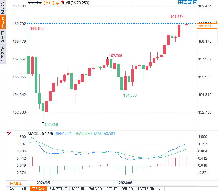 走势回顾:美元兑日元突破160关口,创38年新高,周五触及161.27日元,反映了市场对日本当局可能干预的担忧。